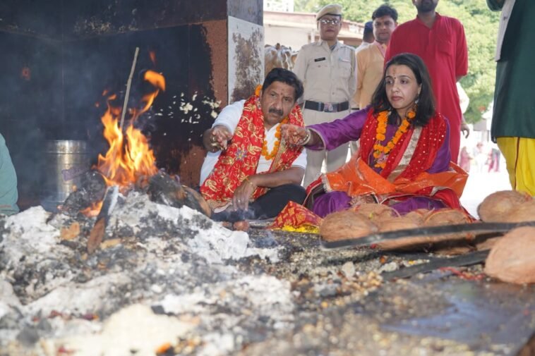 ज्वालामुखी 15 अक्तूबर। उपमुख्यमंत्री मुकेश अग्निहोत्री ने कहा कि धार्मिक पर्यटन को बढ़ावा देने के लिए महत्त्वाकांक्षी योजनाएं कार्यान्वित की जा रही हैं। माता श्री ज्वालाजी और माता श्री नैना देवी मंदिरों के सौंदर्यीकरण के लिए 100-100 करोड़ रुपये स्वीकृत किए गए हैं। माता श्री चिंतपूर्णी मंदिर के लिए 56.26 करोड़ रुपये स्वीकृत किए गए हैं और लगभग 250 करोड़ रुपये की लागत से एक भव्य परिसर का निर्माण किया जा रहा है। मंदिरों के पुजारियों को विशेष प्रशिक्षण भी दिया जा रहा है। इस क्रम में हाल ही में माता श्री चिंतपूर्णी मंदिर के 15 और माता श्री नैना देवी मंदिर के 10 पुजारियों को बनारस हिन्दू विश्वविद्यालय के माध्यम से ऑनलाइन प्रशिक्षण दिया गया है। बुधवार उप मुख्यमंत्री मुकेश अग्निहोत्री ने बुधवार को बेटी डॉ. आस्था अग्निहोत्री सहित अपनी कुलदेवी माँ श्री ज्वाला मंदिर में माथा टेका और विधिवत पूजा-अर्चना की तथा बेटी के विवाह का प्रथम निमंत्रण भी दिया इसके उपरांत के माता श्री बगलामुखी मंदिर भी पहुंचे और यहाँ भी विधिवत शीश नवाकर आशीर्वाद प्राप्त किया। उन्होंने कहा कि हिमाचल की समृद्ध सांस्कृतिक धरोहरों के संरक्षण के लिए लगभग 11.16 करोड़ रुपये स्वीकृत किए गए हैं।