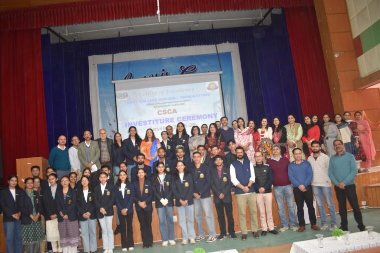 संजौली कॉलेज में महाविद्यालय केंद्रीय छात्र संघ (2025-26) के लिए मेरिट आधार पर नामांकित सदस्यों को शपथ दिलाई गई। इस शपथ समारोह का आरंभ महाविद्यालय की प्राचार्य अन्य वरिष्ठ प्राध्यापकों द्वारा दीप प्रज्जवलन और संगीत विभाग के विद्यार्थियों द्वारा सरस्वती वंदना के साथ हुआ। प्रो. भारती भागड़ा द्वारा स्नेहा (बी. ए. तृतीय वर्ष) को प्रधान, साक्षी शर्मा (बी. एस. सी. तृतीय वर्ष) को उपप्रधान, टीना ठाकुर (बी. एस. सी. द्वितीय वर्ष) को सचिव और शिवांगी (बी. ए. प्रथम वर्ष) को संयुक्त सचिव के पद पर शपथ दिलाई गई। एम.ए. से ऋषभ मेहता (अंग्रेज़ी) आस्था (हिंदी) प्रिया कुमारी (इकोनॉमिक्स) ईशान शर्मा (लोक प्रशासन)और पी.जी.डी.सी.ए. से ट्विंकल चौहान को डॉ दीपक कपरेट ने डी.आर. की शपथ दिलाई। इसके पश्चात डॉ. हिमानी सक्सेना, प्रो. विक्रम भारद्वाज, डॉ. मीनाक्षी शर्मा, डॉ. हर्ष वर्धन खिमटा द्वारा कार्यकारिणी के अन्य पदाधिकारियों को शपथ दिलाई गई। मयंक रांगड़ा, सुहानी वर्मा, मीनाक्षी, उमा भारती प्रियदर्शिनी, बनिता शर्मा, साक्षी शर्मा, क्षितिज डी कड्ढा, मोनिका गौरव शर्मा, प्रवीण मेहता प्रियांशी और दीक्षा ने अलग अलग संकायों के सी.आर. पद की शपथ ली। महाविद्यालय की रेंजर और रोवर से अनन्या ठाकुर और कुनाल ठाकुर को शपथ दिलाई गई। एन.एस.एस. से अंशुल ठाकुर और हर्ष तोमर, एन.सी.सी. से मिशेल वर्मा और शौर्य चौहान, स्पोर्ट्स से आर्यन और साक्षी, कल्चरल कोटे से नवतेश चौहान और सुप्रिया शर्मा, सब्जेक्ट सोसाइटीज से शुभम ठाकुर और आदर्श चौहान ने शपथ ली।