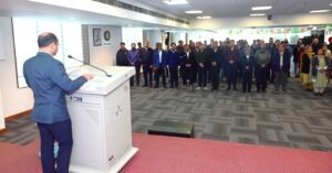 एसजेवीएन ने स्वास्थ्य एवं परिवार कल्याण मंत्रालय, भारत सरकार के ‘100 दिवसीय टीबी उन्मूलन अभियान’ में सक्रिय रूप से भाग लेकर इस मिशन के प्रति अपनी प्रतिबद्धता दर्शाई है। इस पहल के अंतर्गत अजय कुमार शर्मा, निदेशक(कार्मिक), एसजेवीएन ने शिमला स्थित एसजेवीएन निगम मुख्यालय में कर्मचारियों को नि-क्षय शपथ दिलाई। उन्होंने कर्मचारियों से इस अभियान में सक्रिय रूप से योगदान देने का आहवान किया।