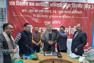विधानसभा क्षेत्र के विधायक अजय सोलंकी ने स्वास्थ्य विभाग द्वारा आयोजित 100 दिवसीय जन भागीदारी अभियान- टीबी मुक्त भारत अभियान शिविर का उपायुक्त कार्यालय के बचत भवन में बतौर मुख्य अतिथि शिरकत की तथा दीप प्रज्ज्वलित कर शुभारंभ किया। शिविर में उपस्थित लोगों को सम्बोधित करते हुए उन्होंने कहा कि टीबी मुक्त भारत अभियान एक जनभागीदारी अभियान है और हम सभी को इस अभियान को सफल बनाने के लिए अपना योगदान देने के साथ-साथ इसमें अधिक से अधिक लोगों की भागीदारी भी सुनिश्चित करनी चाहिए। उन्होंने कहा कि सभी संबंधित विभाग इस अभियान को निर्धारित समय तक धरातल पर लेकर आए ताकि 2025 तक टीबी मुक्त भारत अभियान के लक्ष्य को पूर्ण किया जा सके। उन्होंने कहा कि आशा वर्कर ने कोविड़ के समय बहुत महत्वपूर्ण भूमिका निभाई है और समय-समय पर ऐसे अभियानों में इनके द्वारा अपना पूरा योगदान दिया जाता है। उन्होंने सभी आशा वर्करों से आग्रह किया कि वह सिरमौर जिला की जनता तक इस अभियान को पहुंचाना सुनिश्चित करें और उन्हें क्षय रोग व इसके लक्ष्णों के बारे में भी जागरूक करें। क्षय रोग के लक्ष्ण पाए जाने पर उनकी जांच की जाए और क्षय रोगी को उचित स्वास्थ्य लाभ दिया जाए। इसके अतिरिक्त लोगों को जागरूक करें कि उपचार से ज्यादा-बचाव कैसे किया जाए, किस प्रकार का पोष्टीक आहार लिया जाए।